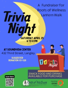 Join us for this fun and interactive fundraiser to support our Roots of Wellness Lantern Walk! Come with a team or find one when you get there. Snack, food, and drinks are available for purchase. Suggested Donation $5 – $20.